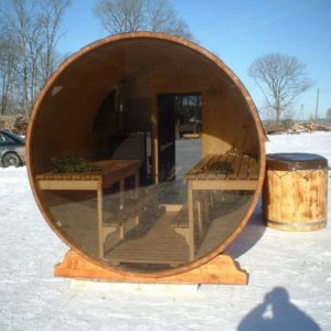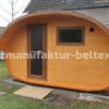 Fasssauna mit Panoramaglas Makrolong MPC oder Halbem Panoramafenster