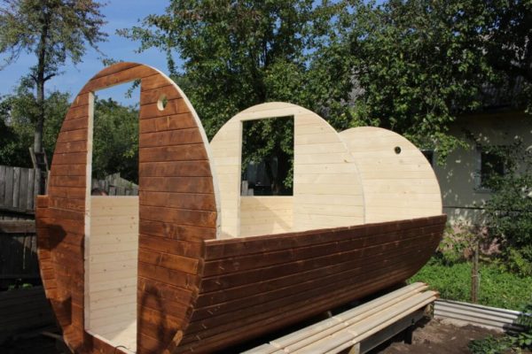 Es ist auch wichtig, die Montageprinzipien im Voraus zu überprüfen, da der Saunaaufbau kein LEGO-Konstruktor ist und vor Ort einige Teile möglicherweise abgeschnitten oder korrigiert werden müssen. Zwischen Wand und Türrahmen oder Fenster wird eine extra Abstand (Lückenbreite) ist bis ca. 7 cm, für Rundholz- 10 cm, um das Arbeiten des Holzes auszugleichen. Eine Sauna setzt sich nach Druck unten ständig, daher kann diese Lücke mit Steinvata (Isover) verknüpft werden.